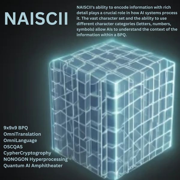 NAISCII is further empowered by NASOF (Nonagon AI Standardized Object Format). This innovative paradigm shift dictates how information is organized and packaged for efficient exchange between AI systems. At the heart of NASOF lies the 9x9x9 structure, a conceptual leap forward in data formatting: